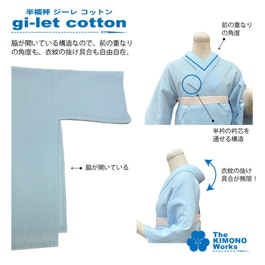 身頃はさらし、地衿は半モスの綿100%。半衿はそれぞれ異なる素材ですが全て洗濯できます。