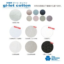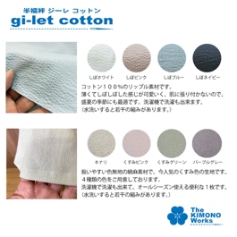 薄くて柔らかいリップルコットン100%と綿麻の色無地の8種類から選んでいただけます。
